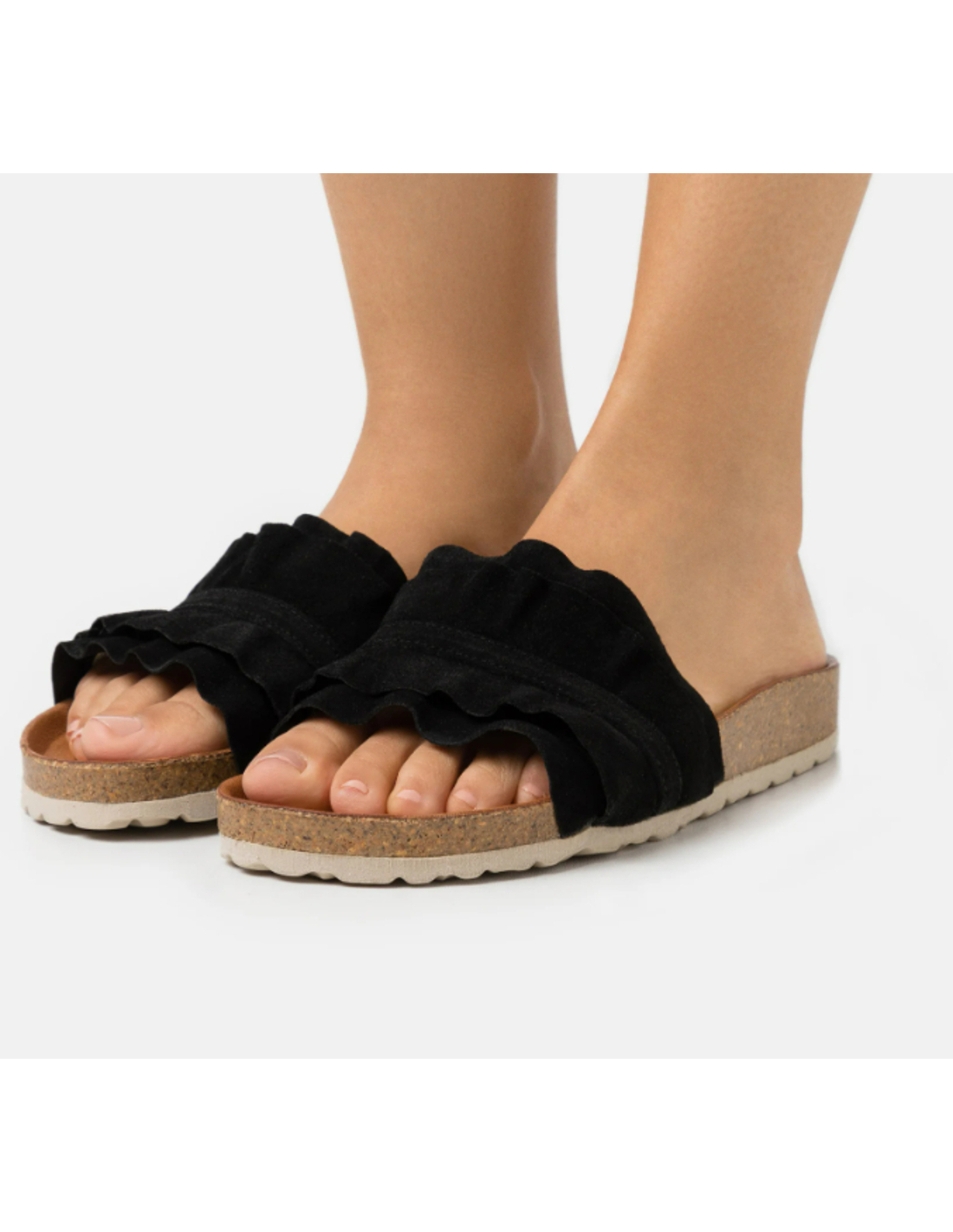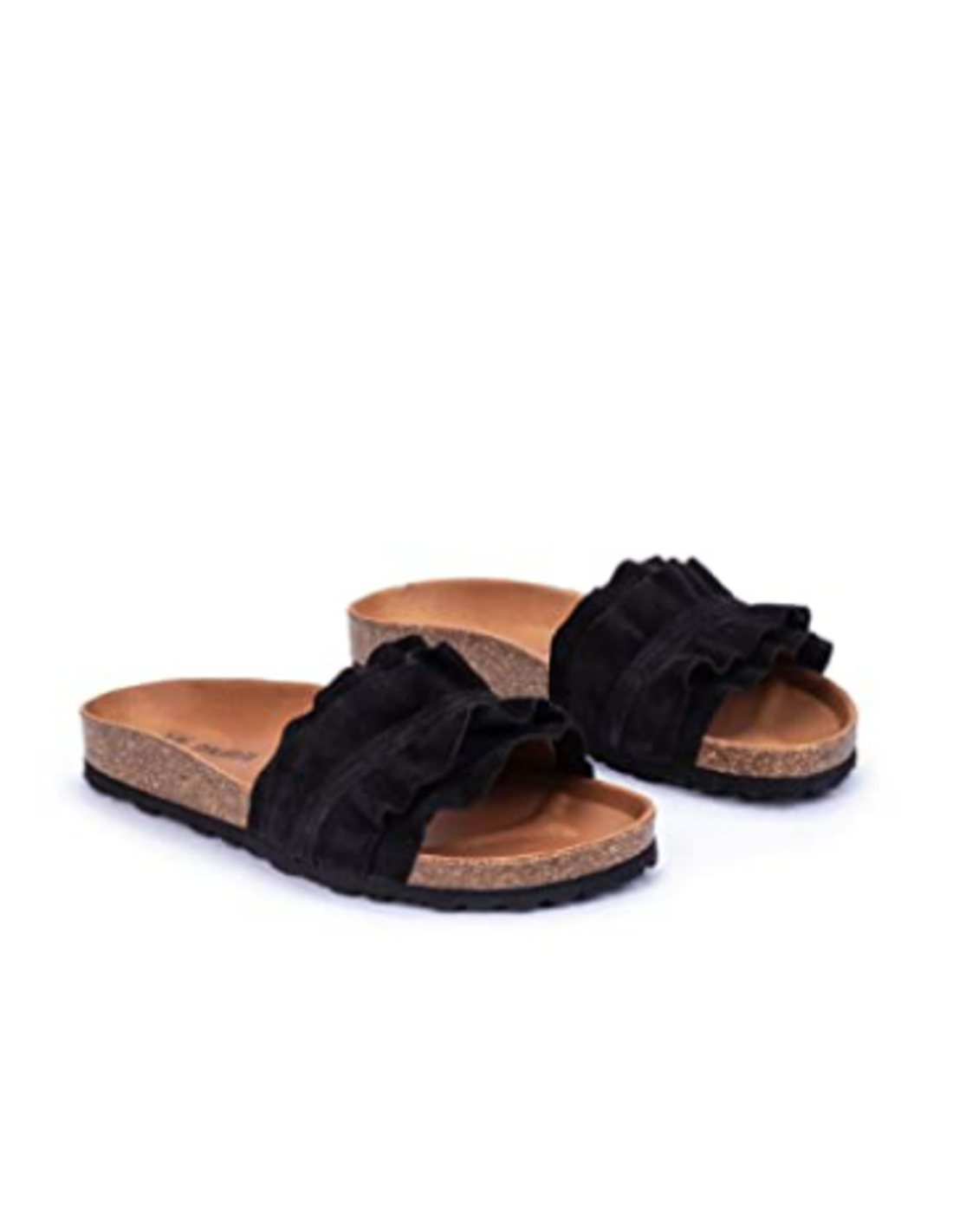 Sandalias Rocio Serraje Volante en color negro. Confeccionadas con material de Serraje, forro y planta de piel y suela de caucho y corcho. Fabricadas en España. Rocío es el icono de nuestra familia de sandalias, una pieza que representa la esencia de Verbenas con un diseño sencillo pero lleno de carácter. Inspirada en las tendencias contemporáneas, esta sandalia se distingue por su doble volante, un detalle que aporta movimiento, frescura y un estilo único que no pasa desapercibido.